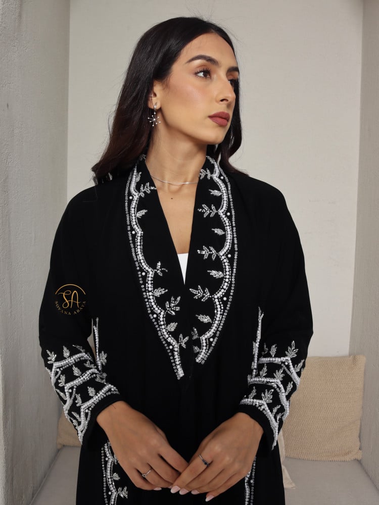 تصميم يجمع بين الذوق الخليجي الفاخر واللمسة المعاصرة لعاشقات العبايات العصرية.