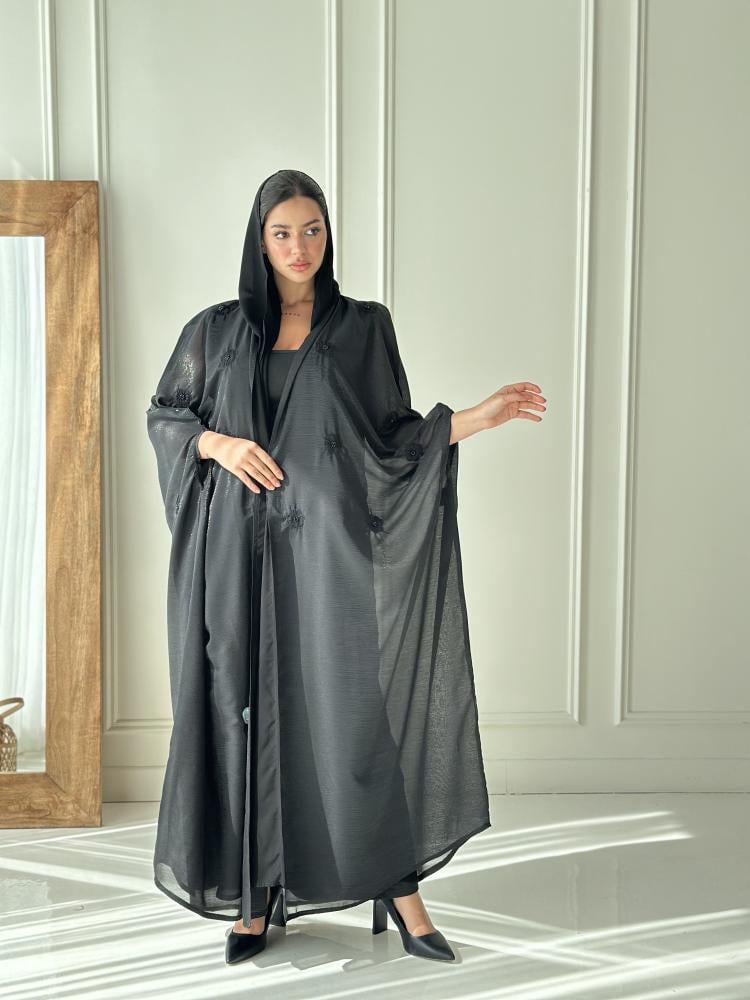 - التطريز: عباية بتطريز اسود يدوي أنيق وفخم يضفي طابع ملكي.